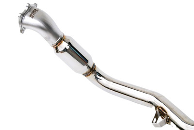 The Invidia divorced and catted downpipe features 3" diameter stainless steel piping, thick flanges, and a cast upper section for optimal flow and performance.